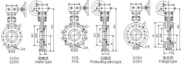 本產(chǎn)品815、830系列蝶閥的主要結(jié)構(gòu)特征為對(duì)夾式和法蘭式三偏心結(jié)構(gòu),而815、830L系列蝶閥的主要結(jié)構(gòu)特征為閥體周邊帶凸耳且設(shè)計(jì)成帶螺孔單法蘭結(jié)構(gòu)。815、830系列蝶閥廣泛應(yīng)用于石油、化工及工業(yè)環(huán)保水處理、高層建筑、給排水等管道上。其特點(diǎn)為:由于采用的是三偏心結(jié)構(gòu),密閉性能可靠,確保開(kāi)啟時(shí)蝶板不接觸密封座,消除了密封座不均勻負(fù)載,延長(zhǎng)了使用壽命、確保可靠的密封性能,具有耐高溫、耐磨損、耐腐蝕等優(yōu)點(diǎn)。