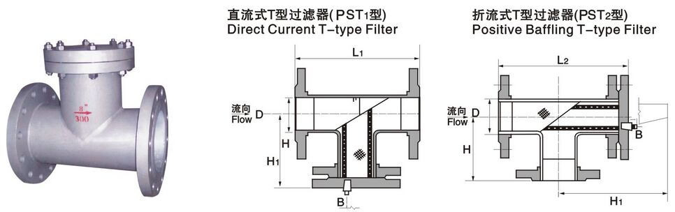 直流式T型管道過(guò)濾器結(jié)構(gòu)圖紙: